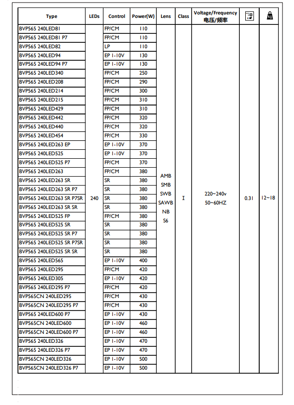 19 BVP565 LED577/730 430W EP SAWB P7 911401612709
